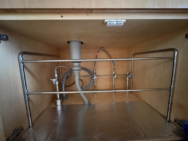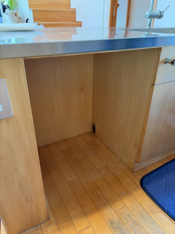 取り出したキャビネットの中は、配管はすべて横のキャビネットにつながっているので、すっきりしています。