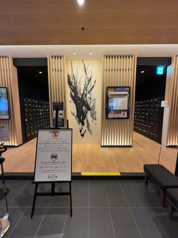 スーツケースに斜線のサインがありますが、スーツケースは泉 天空の湯に持ち込むことができません。
