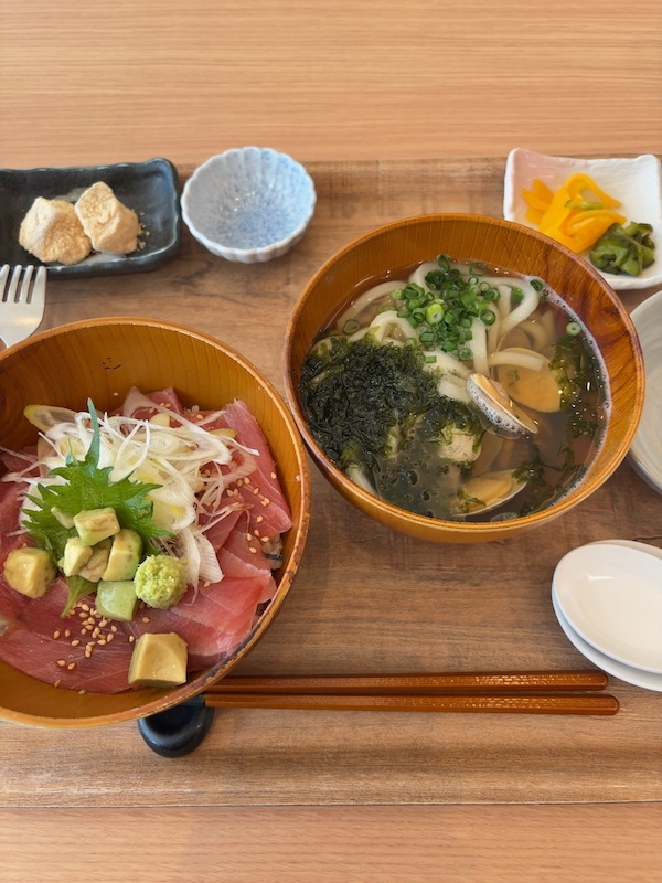 メニューの中から選んだのは「マグロ丼とあさりうどんのセット(2,800円)」です。