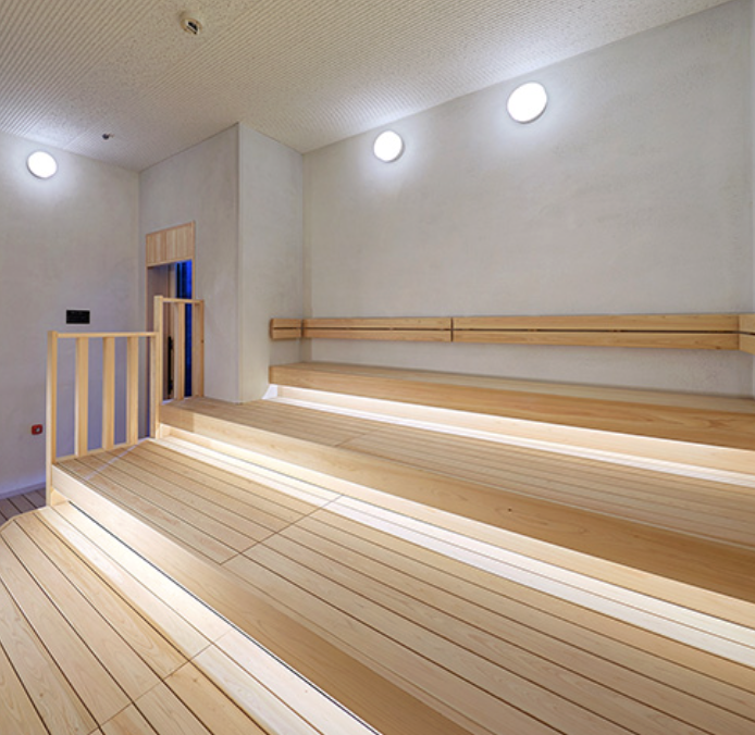 ドライサウナはスペースも広く階段状のスペースが人気です。