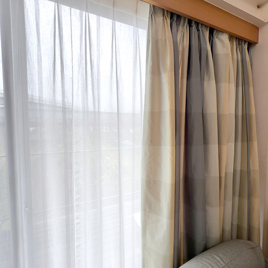 すると一緒に掛けているドレープカーテンが汚れているように見えてきました。