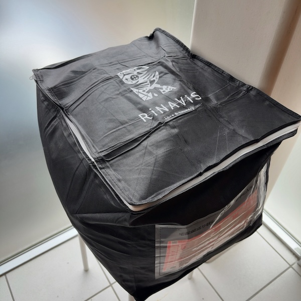 カーテンを外して梱包袋に入れたら、ファスナーを閉めて準備完了。