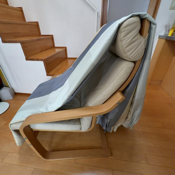 箱に入れたままだと、たたみシワがついてしまうから、掛けるまでに時間がかかる時はイスなどに掛けておくといいと思います。