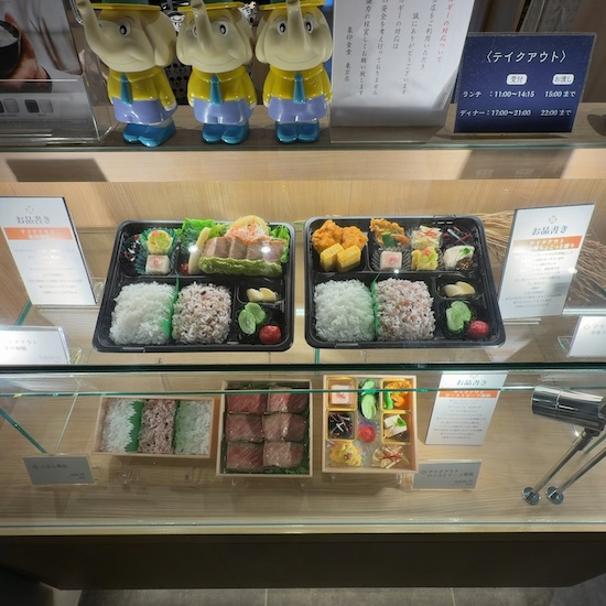 入口にはテイクアウト用のお弁当が並んだショーケースがあります。