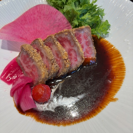 メインは黒毛和牛のカツレツ デミ味噌ソース仕立て。